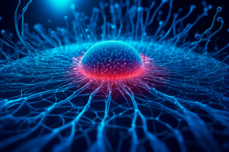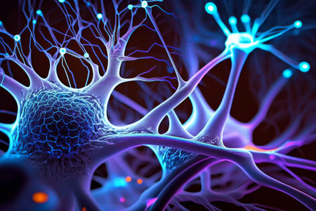 Glowing nerve cells in futuristic space backdrop generated by artificial intelligence