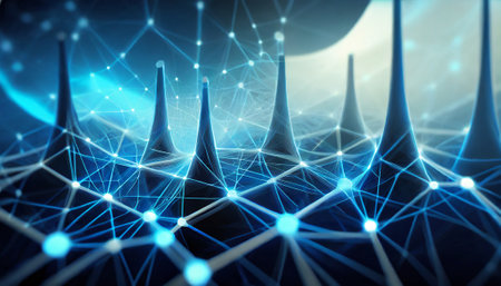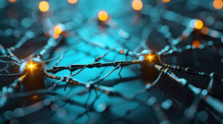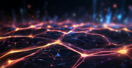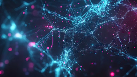 Abstract visualization of a neural network with glowing synapses and interconnected nodes representation.