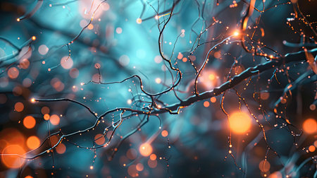 Abstract electric nerves or lightning-style glowing branches over dark background. Sci-fi, energy, or biology themed wallpaper or illustration. Generative AI