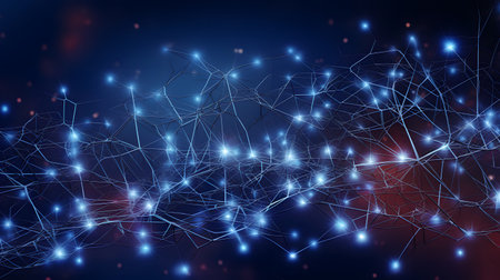 An abstract blue background filled with glowing interconnected nodes and luminous lines, suggesting a complex...