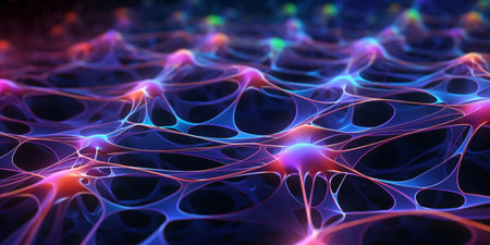 Abstract representation of neural connections with vibrant colors, perfect for technology and science themes.