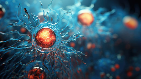3D Render of a Microscopic View Cancer Cells Structure Depicted in Scientific Visualization.