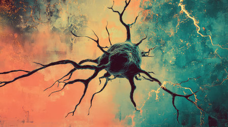An intricate illustration of a neuron, the basic unit of the nervous system, highlighting its complex dendrites and axons