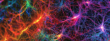 Glowing neural network patterns in vibrant modern tech colors create stunning visuals