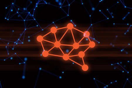 Blue showing neural network visualization with glowing blue and orange nodes and interconnecting fibers. resolution