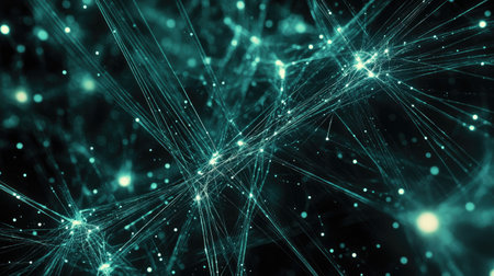 A visually striking abstract representation of neural pathways or a digital network with luminous nodes and lines, illustrating concepts of communication, science, and innovation.