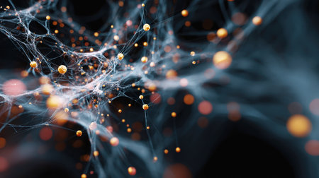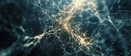 A visually striking abstract representation of neural pathways or a digital network with luminous nodes and lines, illustrating concepts of communication, science, and innovation.