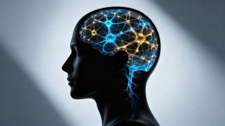 Profile of a human head showcases intricate neural connections and glowing synapses, symbolizing the evolution of artificial intelligence.