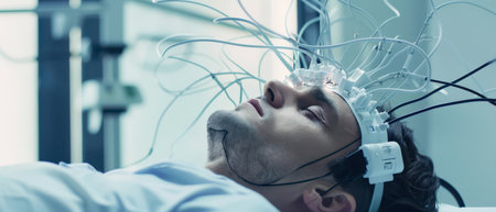 A patient is monitored with EEG equipment, offering detailed analysis of brain activity in a clinical setting. Generative AI