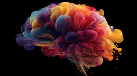 Colorful brain with a splash of paint on it. The brain is surrounded by a splash of paint, giving it a vibrant and dynamic appearance. Concept of creativity. Generative Ai