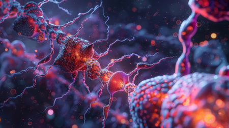 3D Render of a Microscopic View Cancer Cells Structure Depicted in Scientific Visualization.