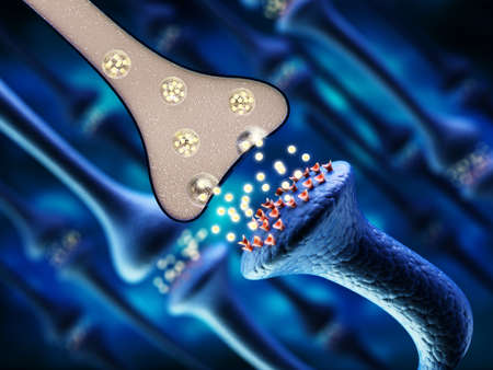 Synapse and Neuron cells sending electrical chemical signals 3d render