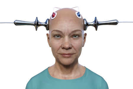 Electroconvulsive therapy, ECT, a treatment used for severe mental illnesses involving the use of electrical currents to stimulate the brain, 3D illustration
