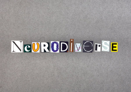 The outline of brain with the inscription neurodiversity is surrounded by colored cubes.