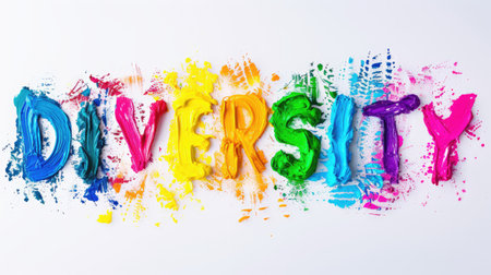 Generative AI, Word Diversity drawn with colorful acrylic paint on white background