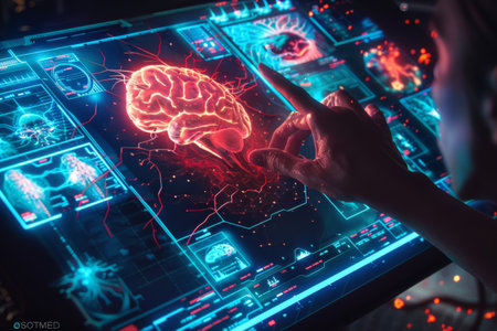 An analyst focused on brain imaging data, highlighting the crucial role of AI in enhancing medical diagnostic processes
