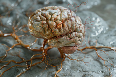 This captivating image artfully contrasts organic and technological elements, illustrating the synergy between nature and innovation within the human mind.