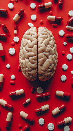 Conceptual Illustration of Pills and Brain Health and Cognitive Function