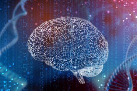 3d illustration of human DNA and neurons. Science and medical background