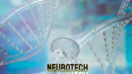 crystal brain and gold text neueotech for sci or medical concept 3d rendering