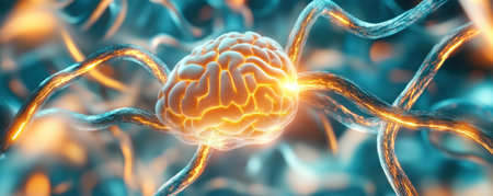 Illustrative neuron connections in the brain with glowing signals, suitable for education and scientific content.