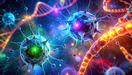 This abstract image showcases colorful neural connections and structures, featuring vibrant lights and intricate patterns that evoke a sense of depth and exploration.