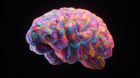 Stunning 3D illustration of a human brain, enhanced with colorful abstract elements, representing thought, creativity, and the limitless potential of the human mind.