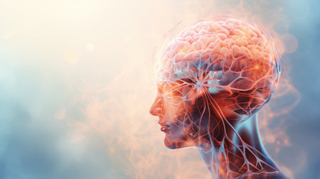 A brain is illustrated with bubbles surrounding it, set against a soft pastel-colored background.