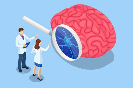 Isometric neurology, cognition, neuronal network, psychology, neuroscience scientific. Neurons in the brain. Medical Research Microscope. Synapse and Neuron cells sending electrical chemical signals.