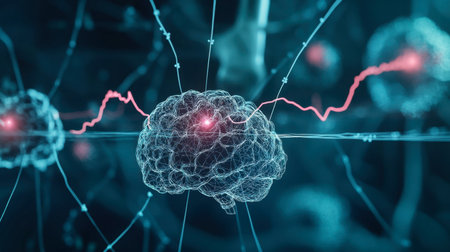 Abstract visualization of a neural network with glowing synapses and interconnected nodes representation.