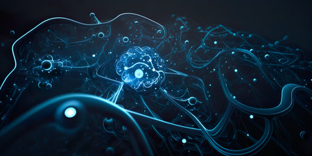 Captivating abstract of a vibrant neural network, pulsing with electric blue light. Symbolizes connection, innovation, and the power of thought. Perfect for science, tech, and medical themes.