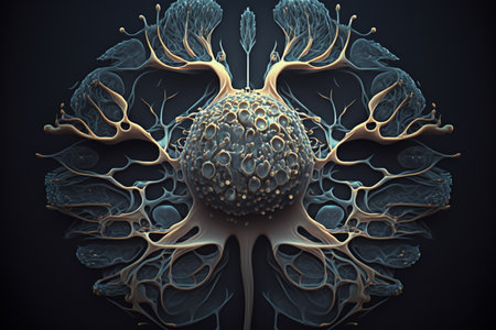 This digital illustration presents an intriguing close-up view of a singular cell, seemingly magnified to highlight its intricate details. The image seems to explore the fascinating world of macro photography, capturing the cells structure in stunning detail. Despite its scientific nature, the image possesses an aesthetic quality, turning a simple cell into a masterpiece of natures design. Overall, the image serves as an excellent example of the beauty and complexity found in the smallest units of life.
