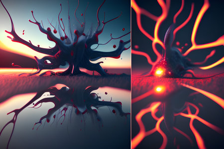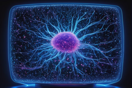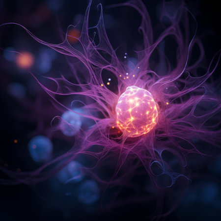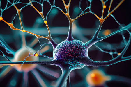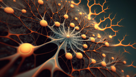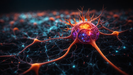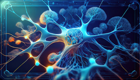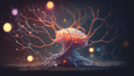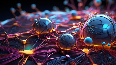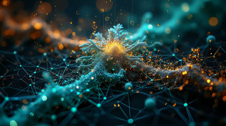 Glowing nerve cells in futuristic space backdrop generated by artificial intelligence