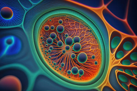 This digital illustration presents an intriguing close-up view of a singular cell, seemingly magnified to highlight its intricate details. The image seems to explore the fascinating world of macro photography, capturing the cells structure in stunning detail. Despite its scientific nature, the image possesses an aesthetic quality, turning a simple cell into a masterpiece of natures design. Overall, the image serves as an excellent example of the beauty and complexity found in the smallest units of life.