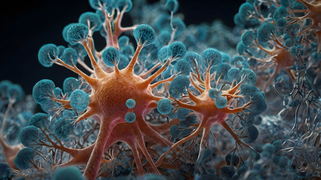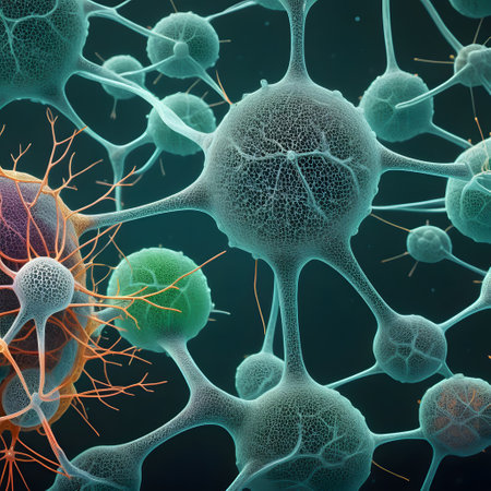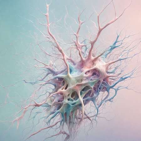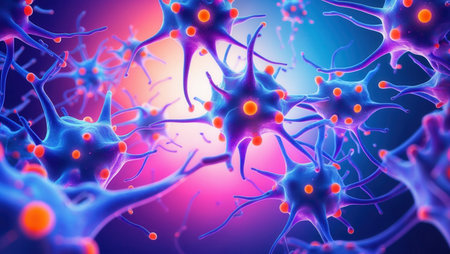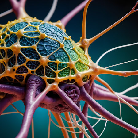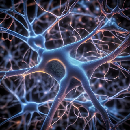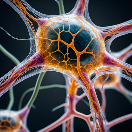 Delicate neural connections form a vibrant network, illustrating the complexity of brain research.