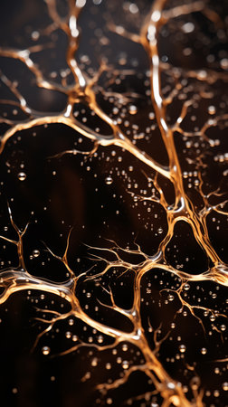 Artificial intelligence or nerve cell concept background. Macro shot of synapses, electrical signals between neurons of brain. Generative AI