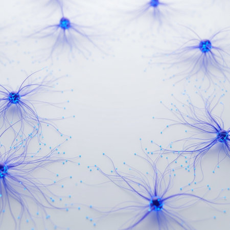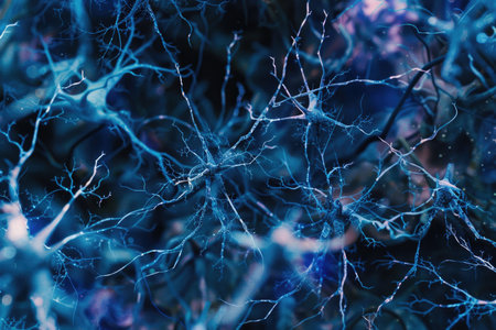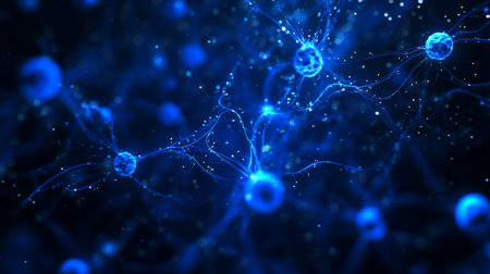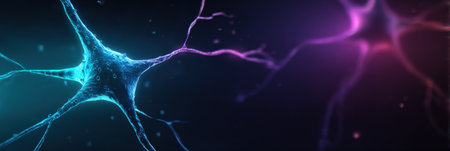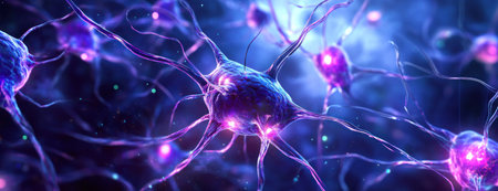 A stunning abstract representation showcasing neurons with vibrant blue and purple tones, creating a futuristic ambiance. Perfect for scientific themes.