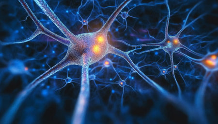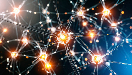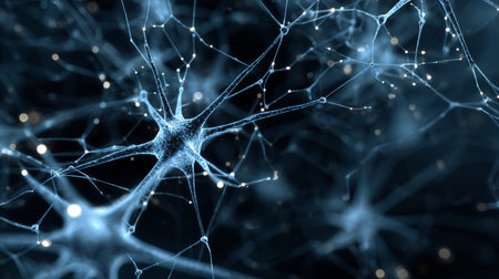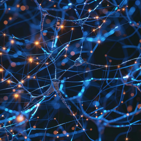 Abstract visualization of a neural network with glowing synapses and interconnected nodes representation.