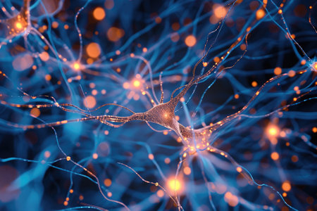 Intricate neural pathways illuminated with vibrant connections showcasing science and technology