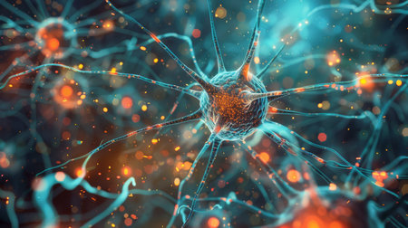 3D illustration of neuron cell with neurons and nervous system, computer generated abstract background