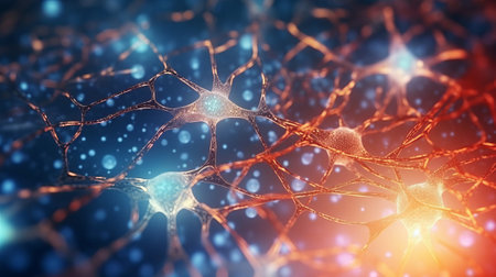 Glowing nerve cells in futuristic space backdrop generated by artificial intelligence