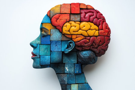 A vibrant puzzle piece brain sculpture representing creativity and cognitive processes, emphasizing the connection between problem-solving and mental health.