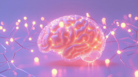 structure of human brain in purple yellow tones as art of brain, created with generative ai