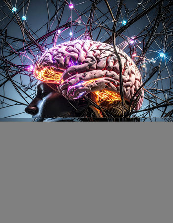 A digital composite image of a person with neural network activity overlay, symbolizing deep thought, innovation, and the complexities of the human mind. Generative AI.
