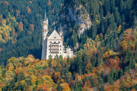 Majestic Neuschwanstein Castle Surrounded by Autumn Forests in Germany