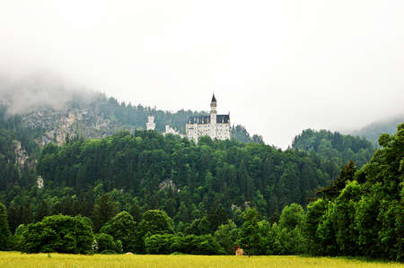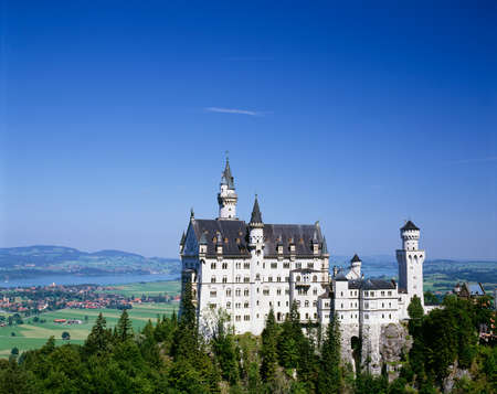 Landscape of royal castle Neuschwanstein in Bavaria, Germany. House building of tower historical castle