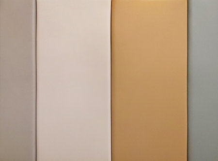 Close up view of an array of thick, smooth paint swatches in various neutral tones, showcasing texture.