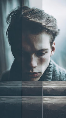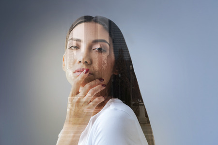 A portrait of a sad woman with multiple exposure concept of mental problems