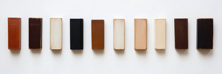 A collection of books from different genres is arranged neatly on a white background, highlighting their diverse cover styles and colors.