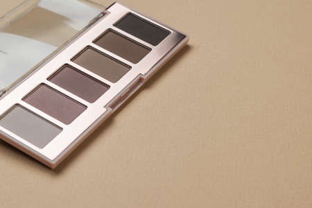 An open set with eye shadow on a light beige background. Stylish women's cosmetics.